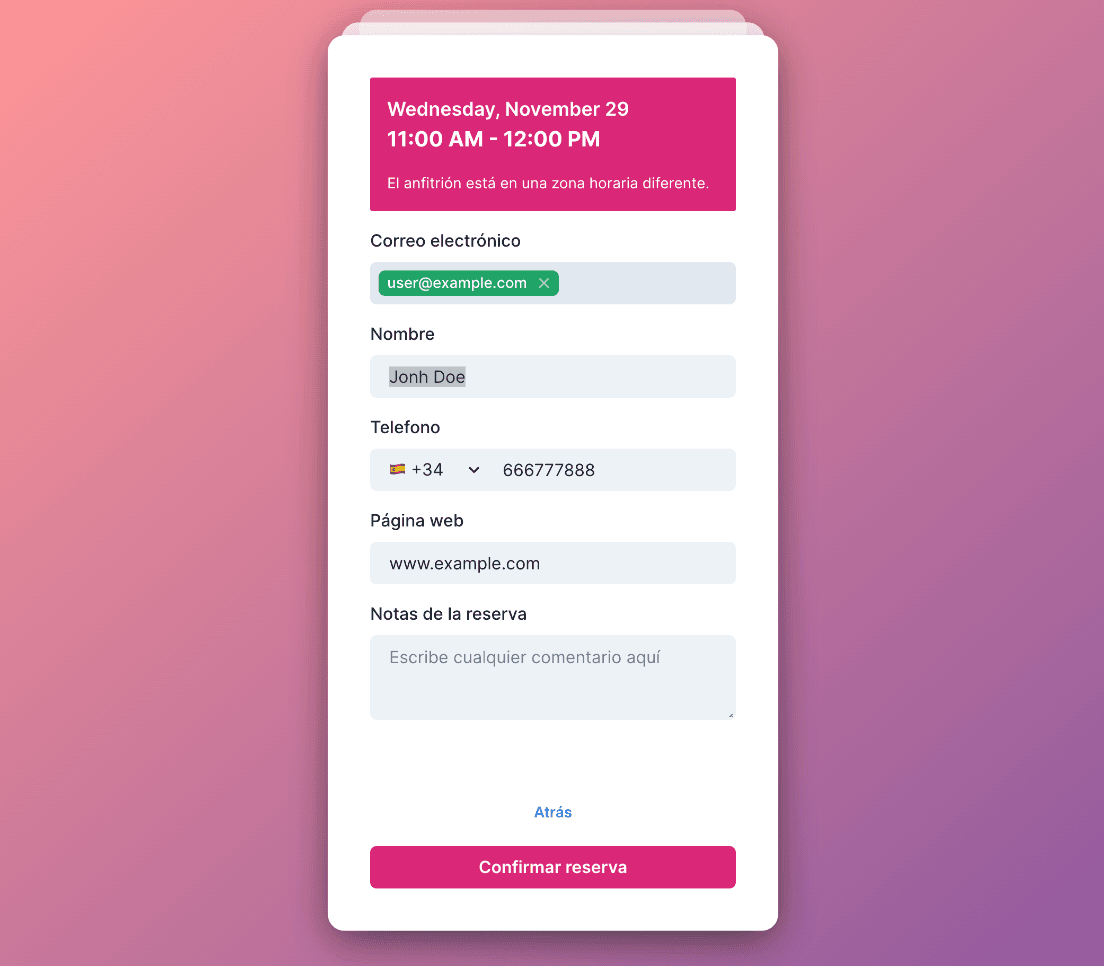 TimeTime permite añadir preguntas a las páginas de reservas de forma que tendrás toda la información disponible de antemano en el momento de la cita.