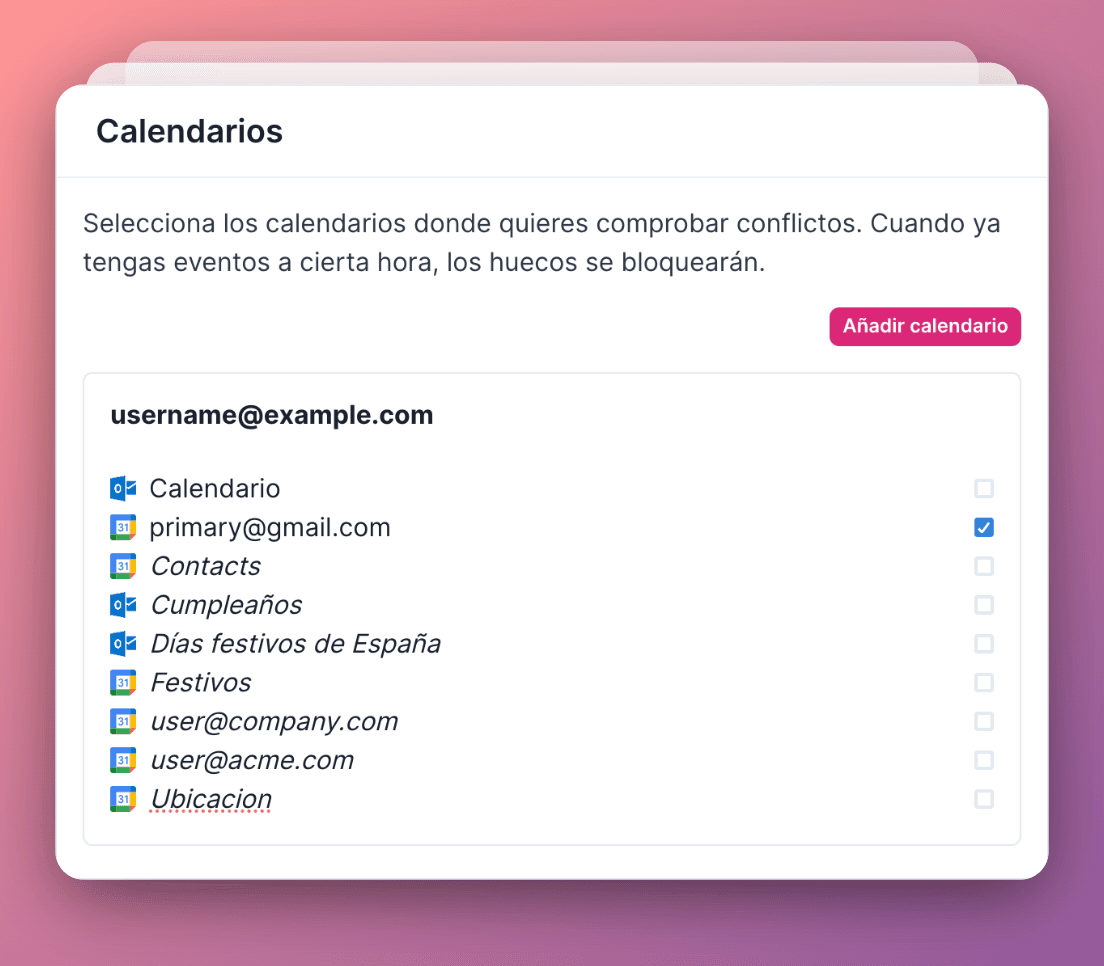 Sincroniza tus calendarios de Google o Microsoft y muestra tu disponibilidad en tiempo real para evitar conflictos de programación.